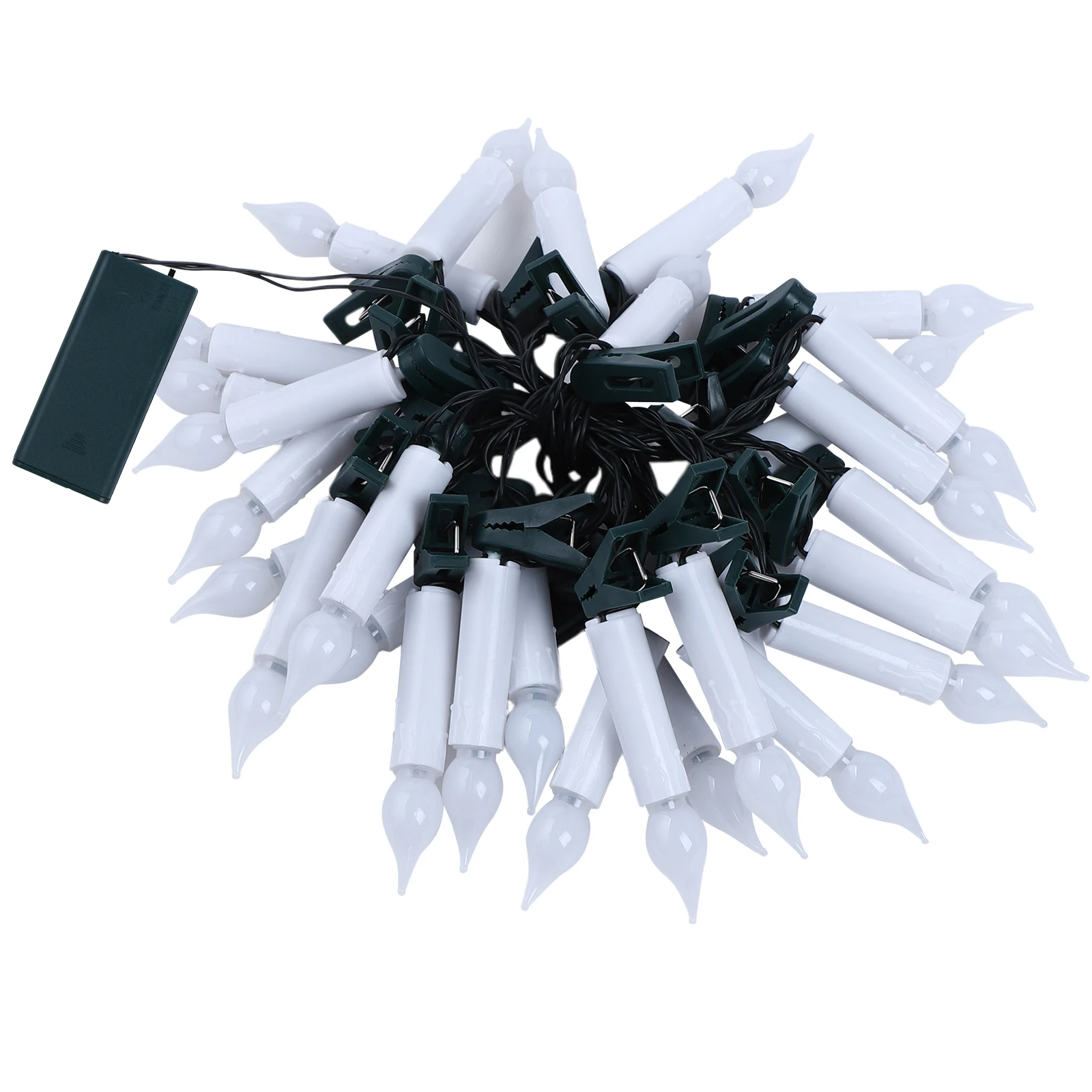 【Durable and Safe:】 Christmas white LED candles are made of plastic material, sturdy, long-lasting, and safe to use for kids, pets, or elders, spending the holiday season in safety; Additionally, all the Candle String Lights only need 2/3 pieces of AA battery, which is not included in the package